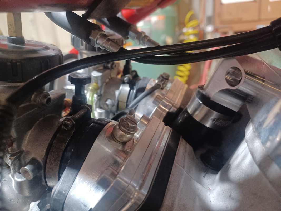 Stato-seals installed on the Haase fabricated R5 banjo bolts and modified intake. New Yamaha oil lines with proper clips installed.