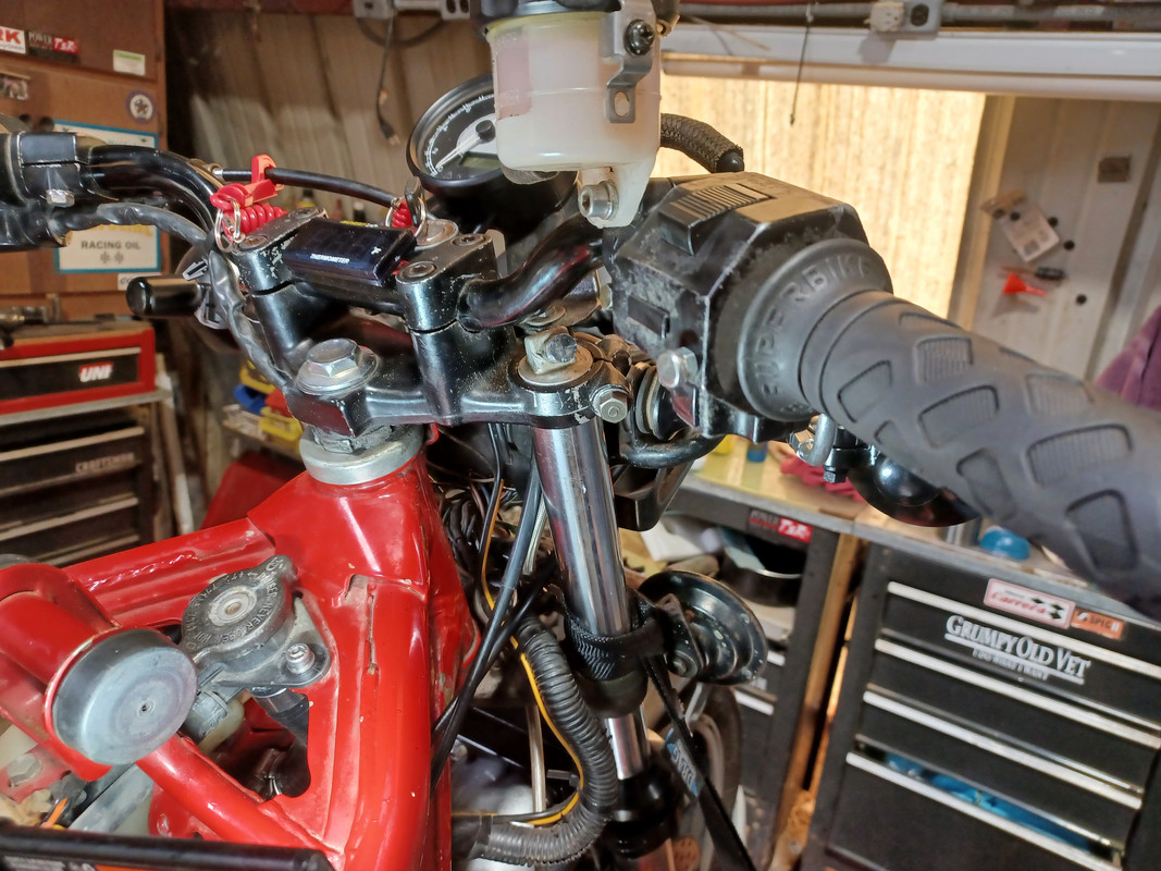 H2 750 Triple throttle lock with a jam nut re-purposed for a new life as a throttle stop for the modified throttle cable housing per M in SC. #16 numbered bit for a 4.3 MM hole. Threads cut with a 5MM x .80 tap.