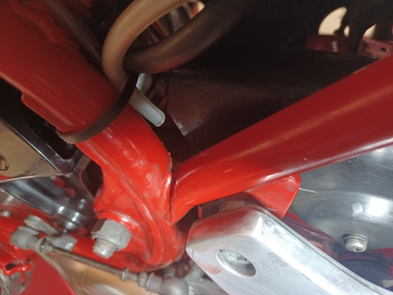 Then I routed it adjacent to the end of the transmission vent hose also routed here so in the event of any overboard venting the resulting oil will end up on the chain and not all over everything.