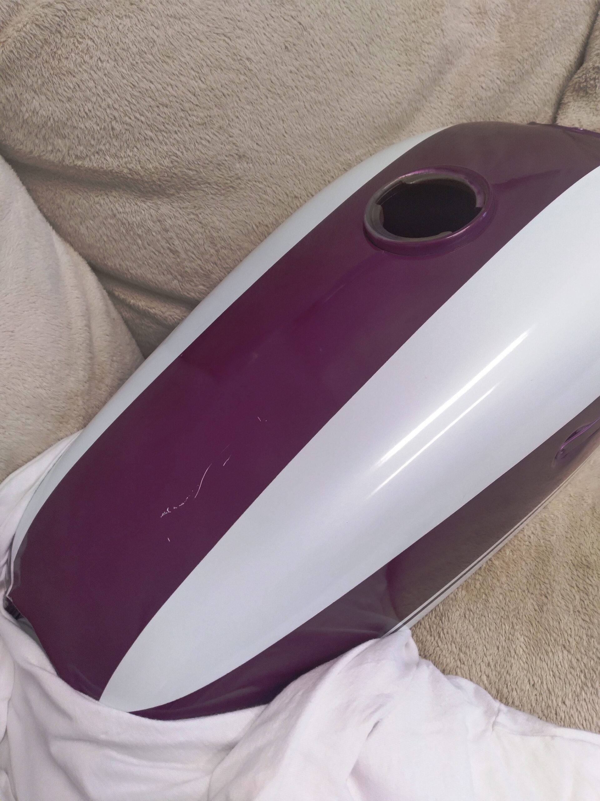 original tank. it was quite wrinkly with small dents all over it, paint faded,  and the cap flange wasnt perfectly square so it would ocassionally seep fuel if it was filled too much out of the cap.